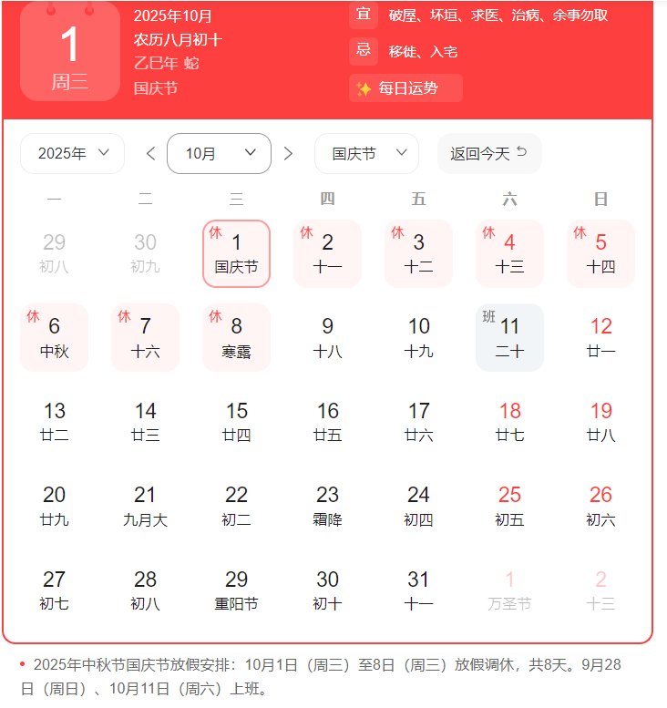 2025年國慶節與中秋節合并